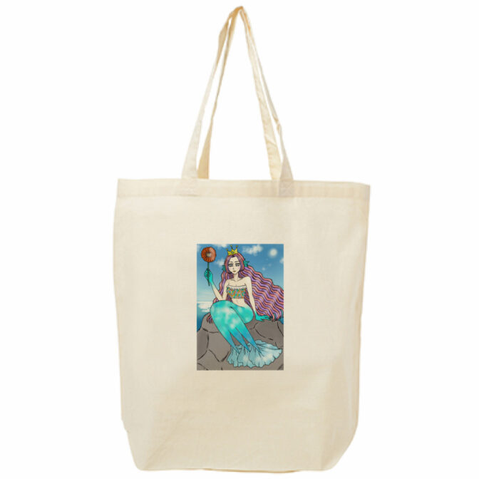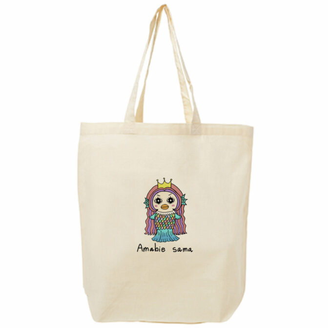 疫病退散の力を持つ伝説の妖怪「あまびえさま」をモチーフにした薄手コットンバッグです。